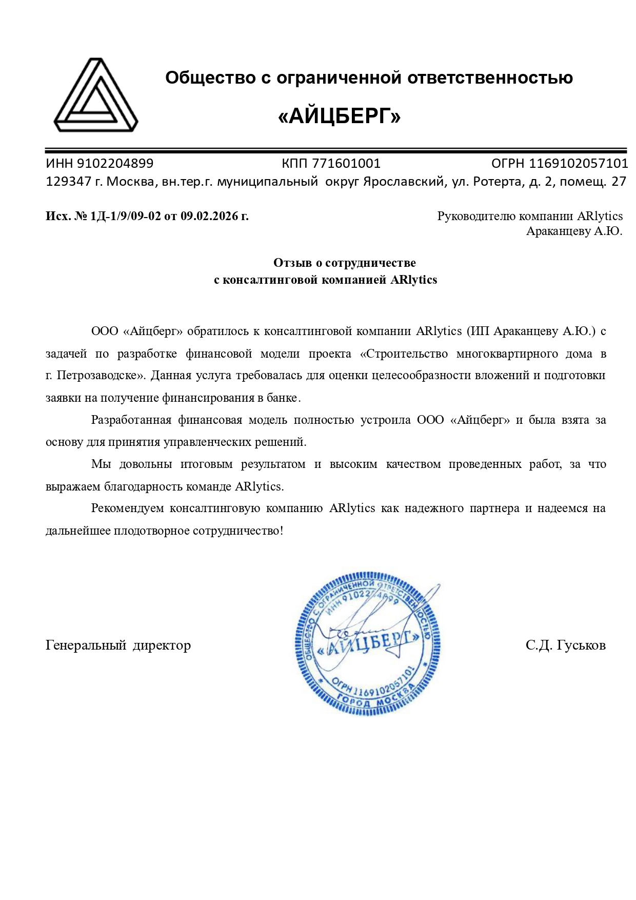 Рекомендуем консалтинговую компанию ARlytics как надежного партнера и надеемся на дальнейшее плодотворное сотрудничество!