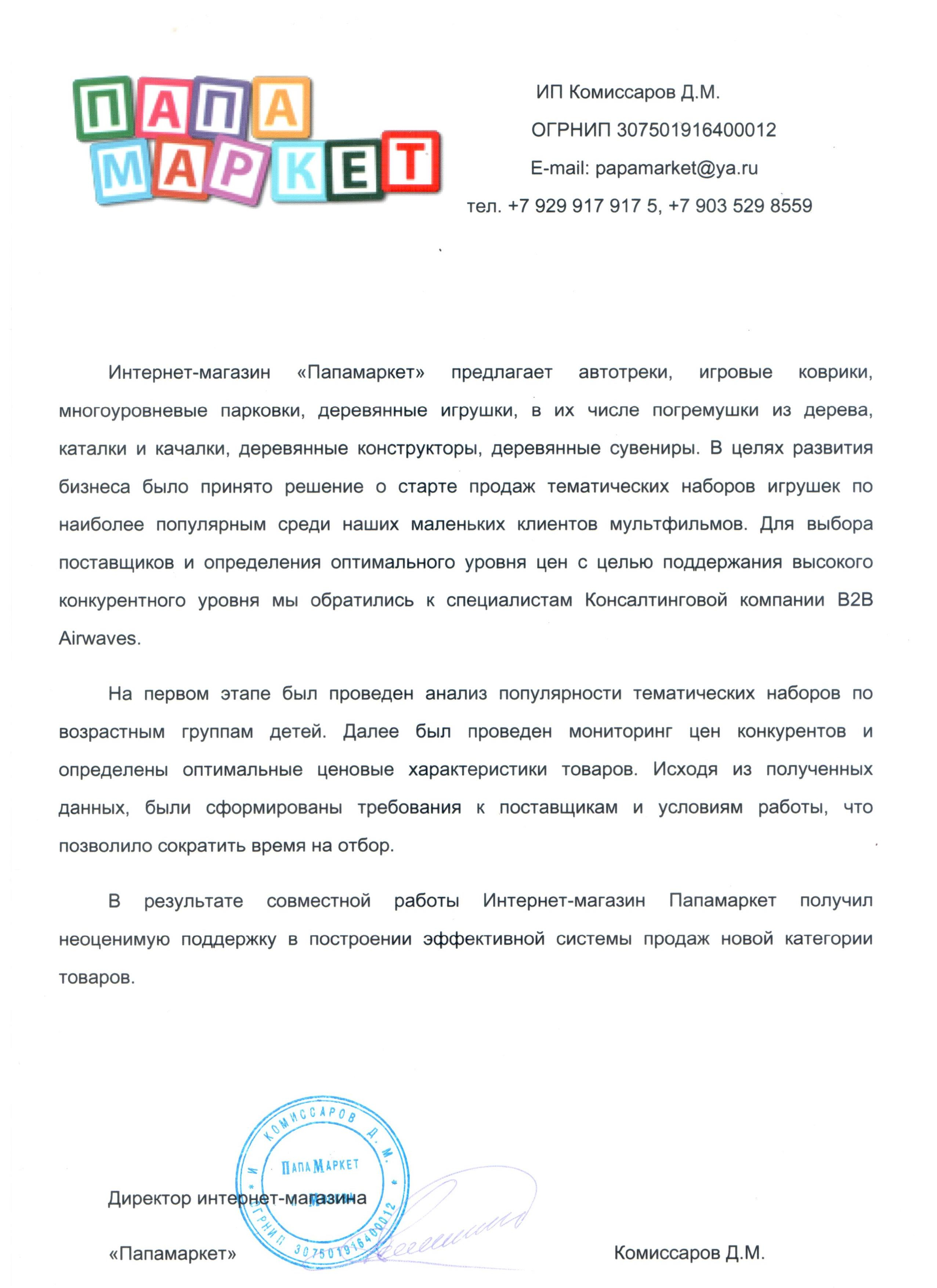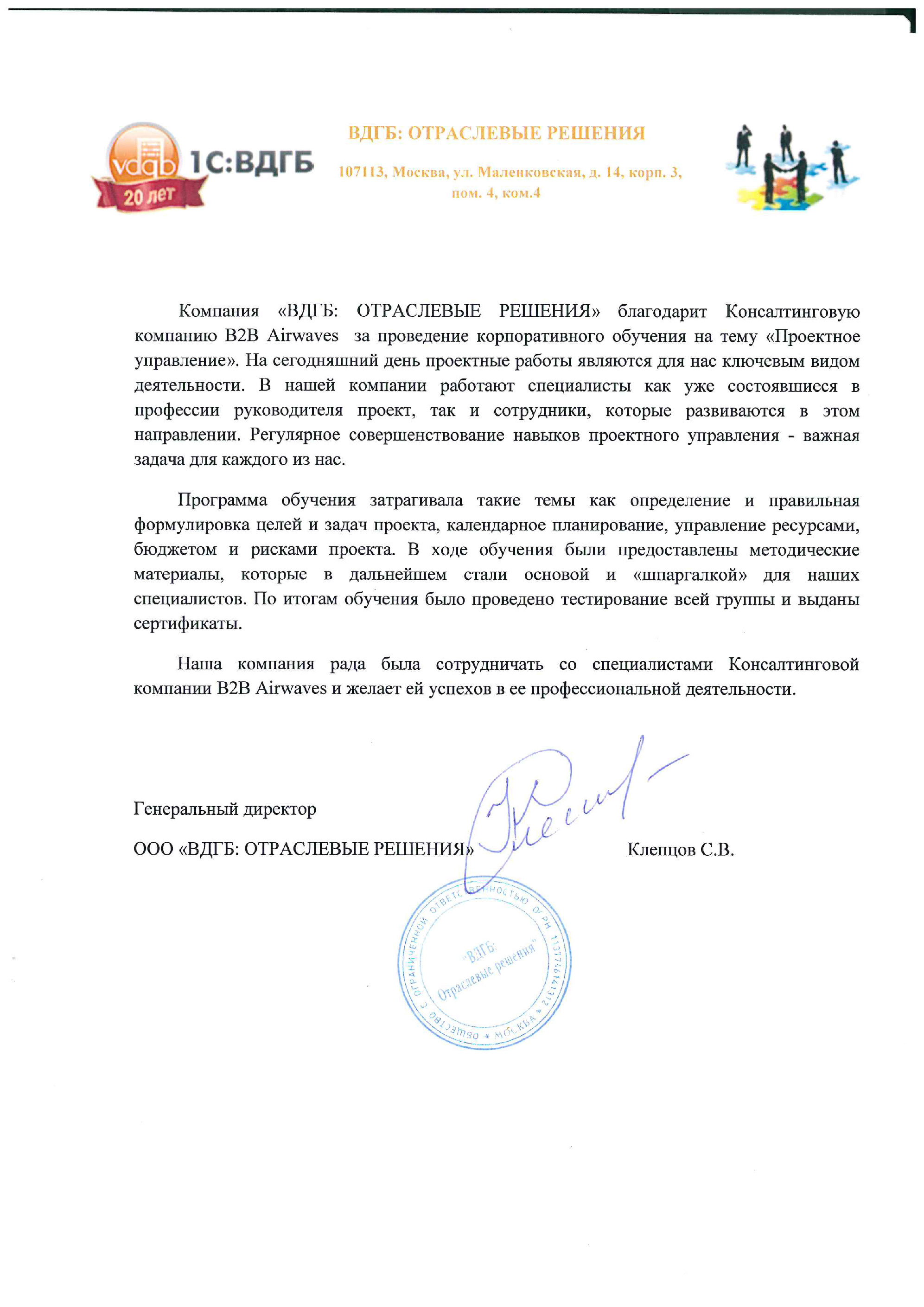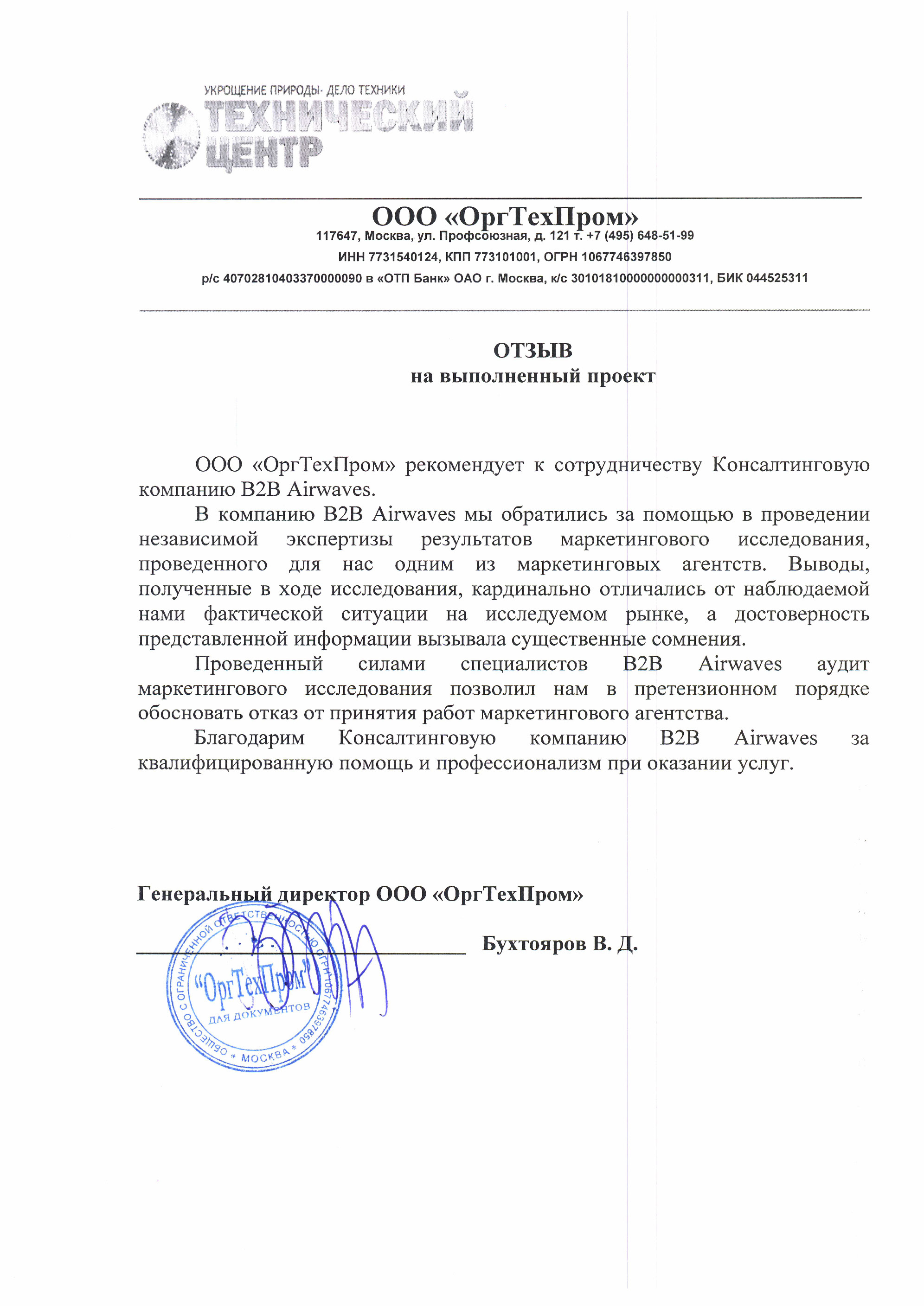 Благодарим Консалтинговую компанию B2B Airwaves за квалифицированную помощь и профессионализм при оказании услуг.