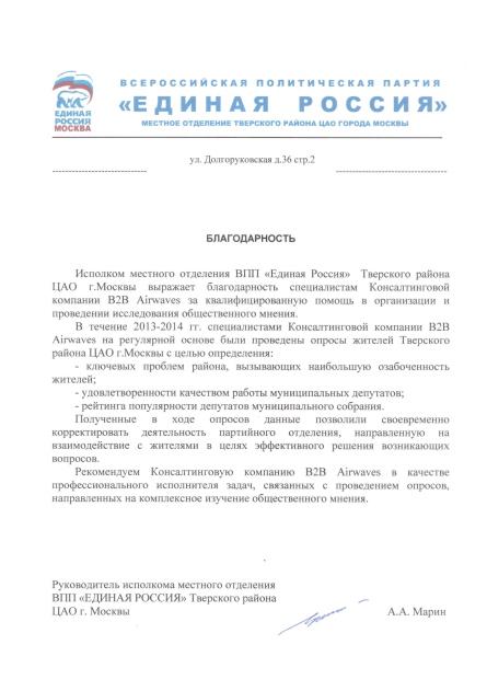 В течение 2013-2014 гг. специалистами Консалтинговой компании B2B Airwaves на регулярной основе были проведены опросы жителей Тверского района ЦАО г.Москвы с целью определения: