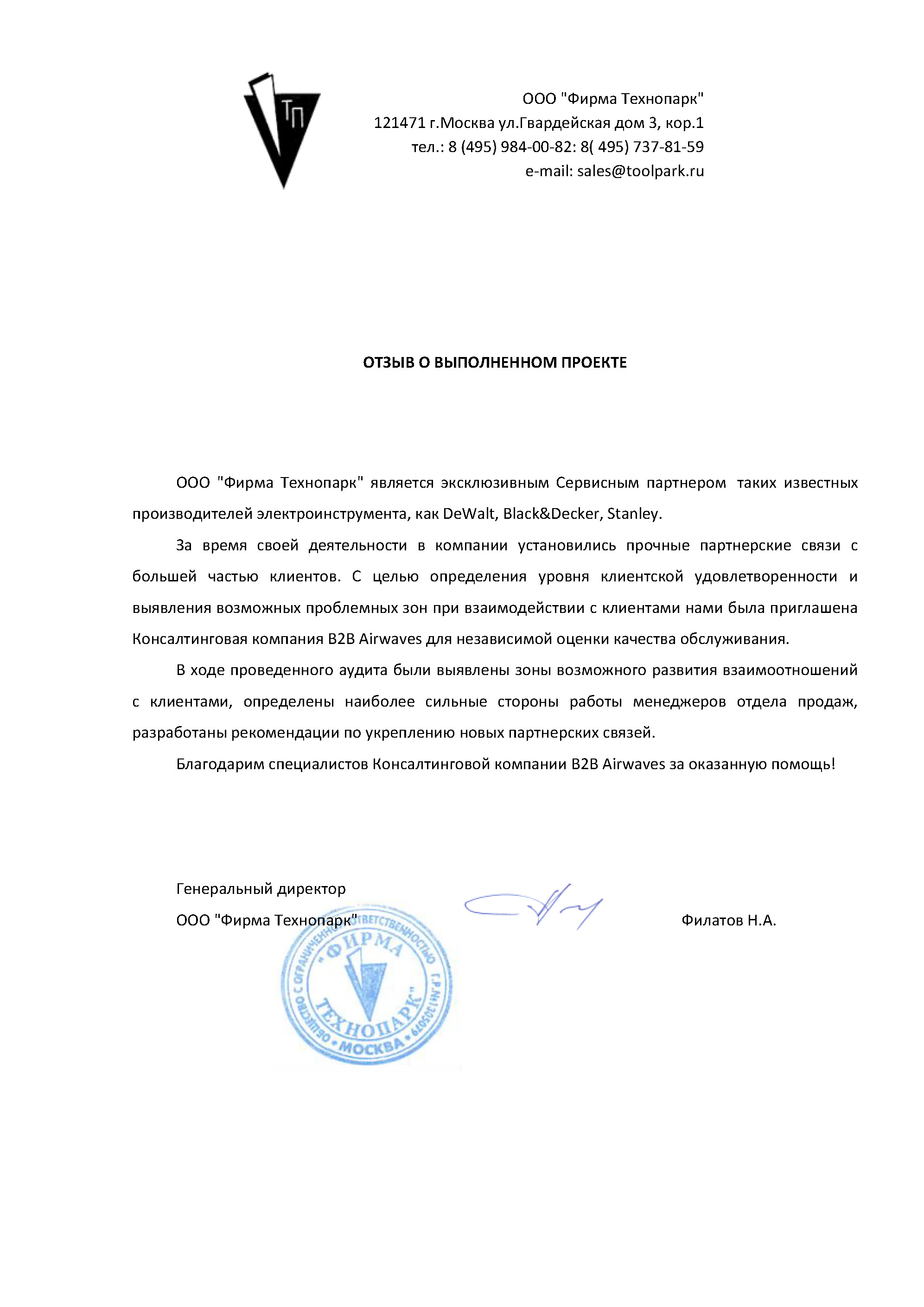 Руководство компании благодарит специалистов ООО «Би ту Би Эйрвейвз» и будет рада дальнейшему сотрудничеству.