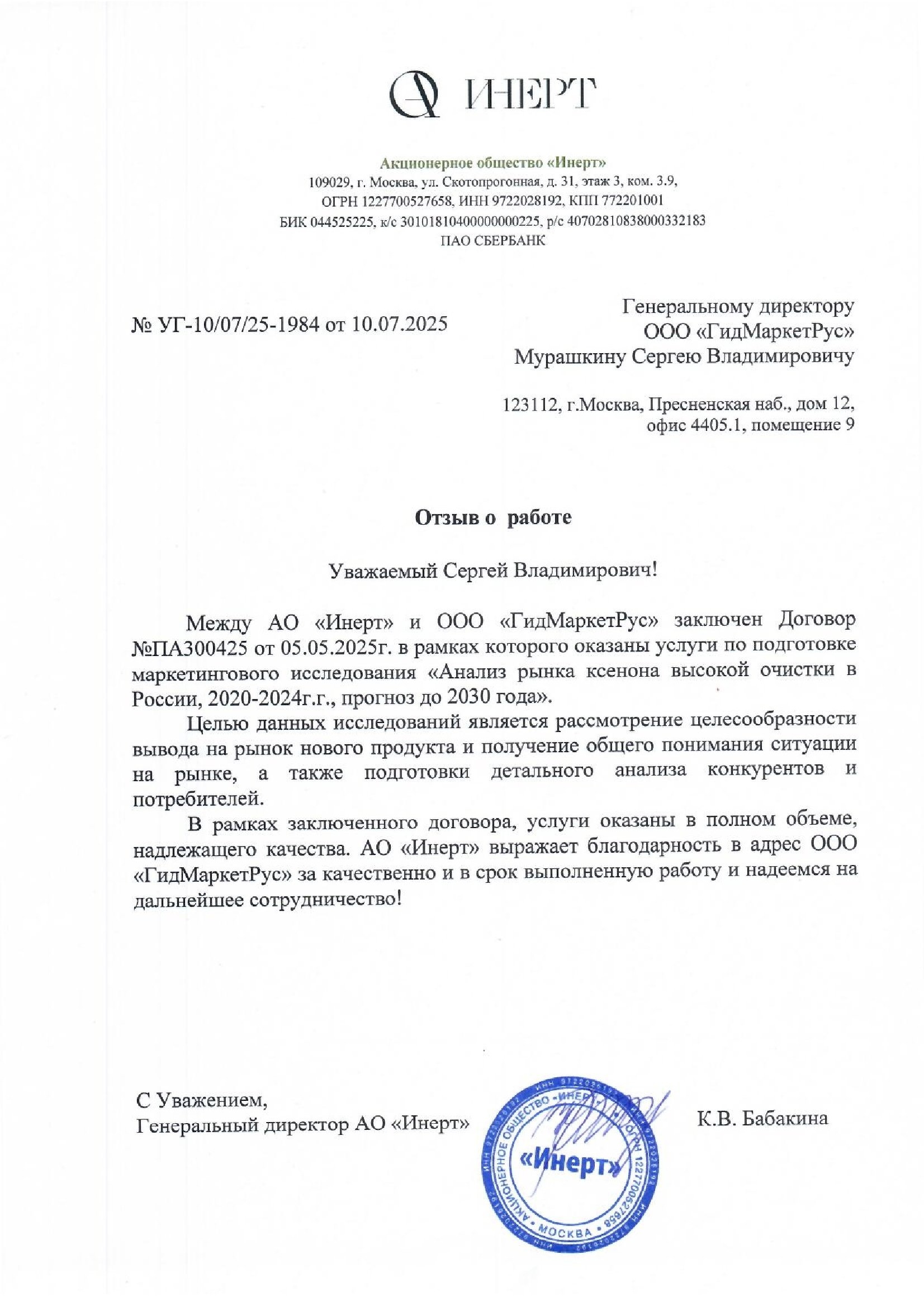 Также хотелось бы отметить высокую оперативность и пунктуальность в соблюдении установленных сроков. Эффективная коммуникация между сторонами обеспечила своевременное решение всех возникающих вопросов и достижение поставленных целей исследования.