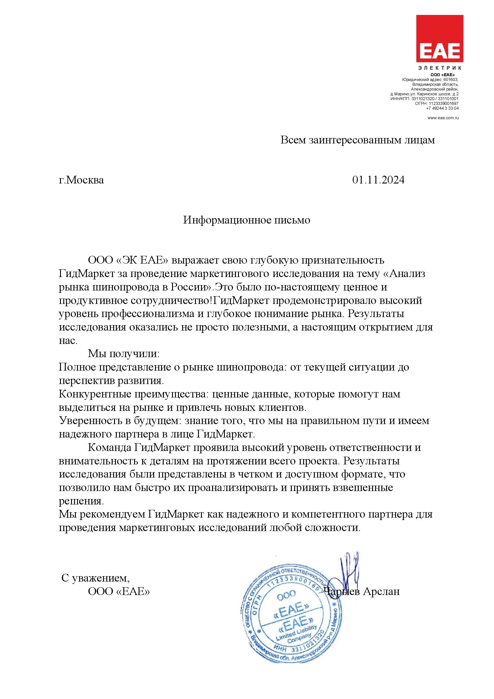 Проведенная работа выполнена профессионально и сдана досрочно. Особо ценим инициативу агентства «ГидМаркет» по предоставлению дополнительных аналитических материалов сверх согласованного объема. Полученная информация уже используется нами в своей работе и имеет высокую практическую ценность.