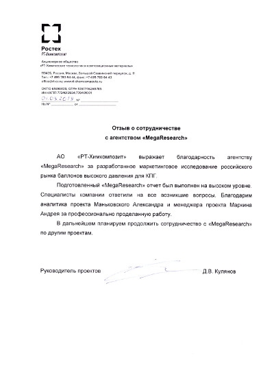 На основании результатов исследования будет принято решение о дальнейшем развитии компании. Надеемся на дальнейшее взаимовыгодное сотрудничество с агентством «MegaResearch».